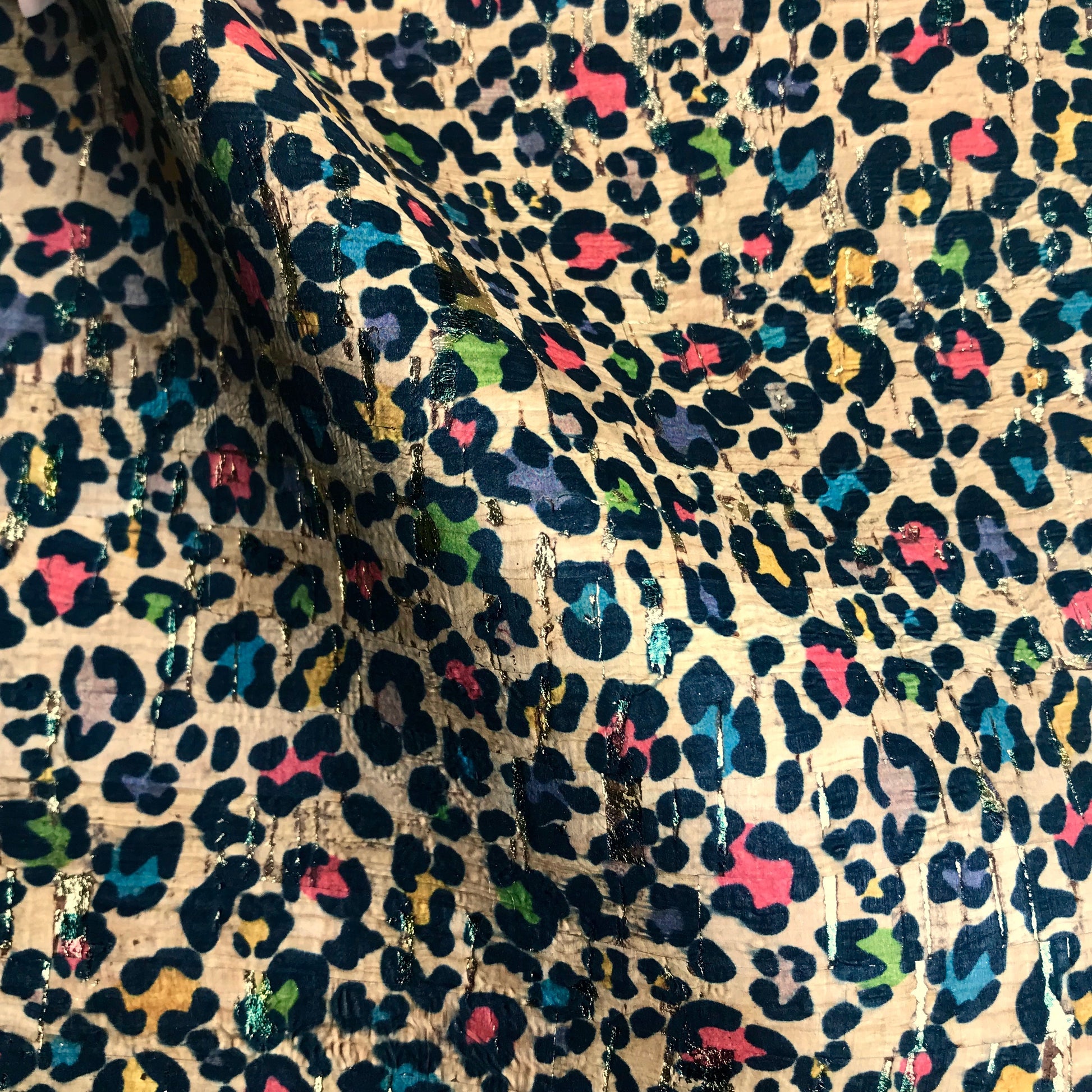 Multi Color Cheetah Print on Natural Cork with Gold Flakes